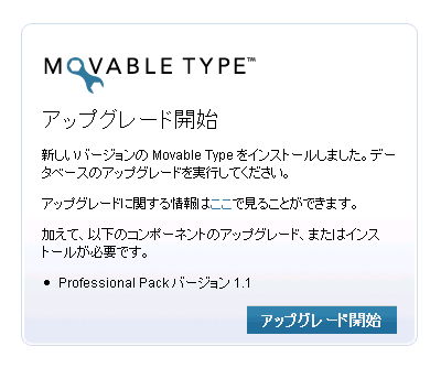 mt.cgi にアクセスするとアップグレードが開始します。「アップグレード開始」をクリック。