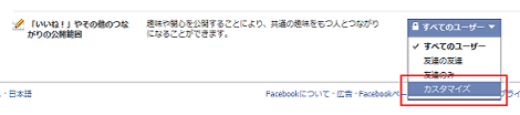 「「いいね!」やその他のつながりの公開範囲」のプルダウンから「カスタマイズ」をクリック。