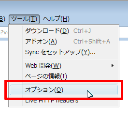 具体的な操作方法は、メニューバーの「ツール」→「オプション」をクリック。