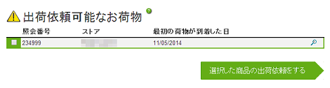 商品が配送先住所に到着すると、「注文管理・依頼」画面に「出荷依頼可能なお荷物」として表示されます。