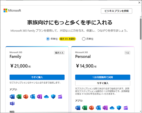 うっかりすると間違えてサブスクリプション購入してしまうので、ダウンロード版を購入された場合はサブスクリプション契約しないよう、注意しましょう。
