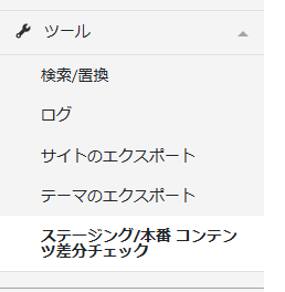 比較したいサイトの管理画面メニューの「ツール」→「ステージング/本番 コンテンツ差分チェック」をクリック。