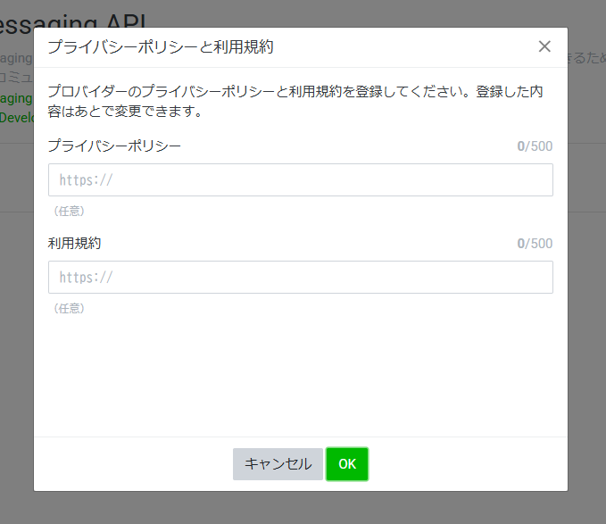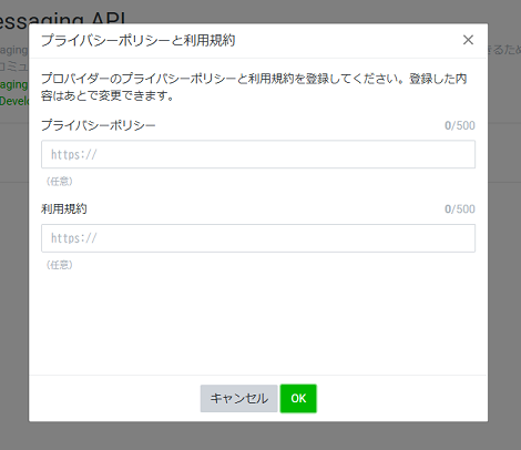 プライバシーポリシーと利用規約は任意なので何も入力せず「OK」をクリック。