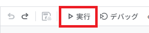 このあと、このスクリプトが周期的に動作するよう「トリガ」を設定するのですが、その前に、このスクリプトが正常に動作することを確認するため「実行」をクリック。