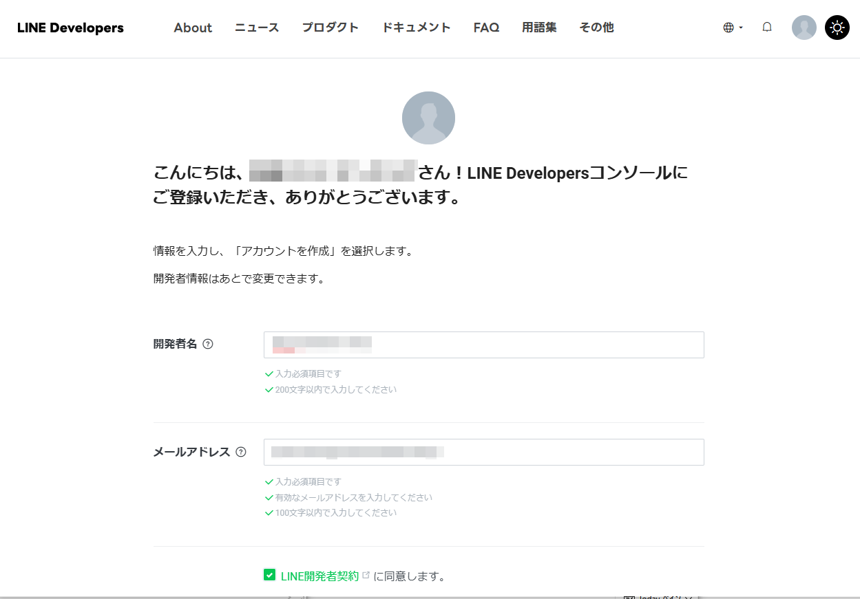 LINE Messaging APIを利用するために、LINE Developersのアカウントを作成します。