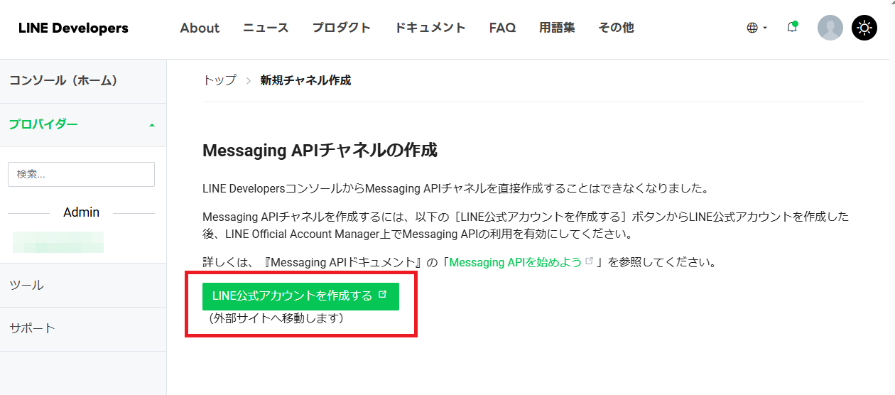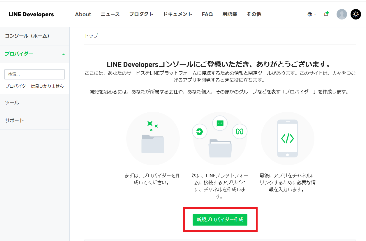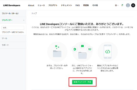 ただ、手順の途中でLINE公式アカウントを作るよう促されるので、正しい順序ではないかもしれません。予めご了承ください。