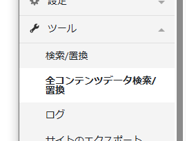 「ツール」→「全コンテンツデータ検索/置換」をクリック。